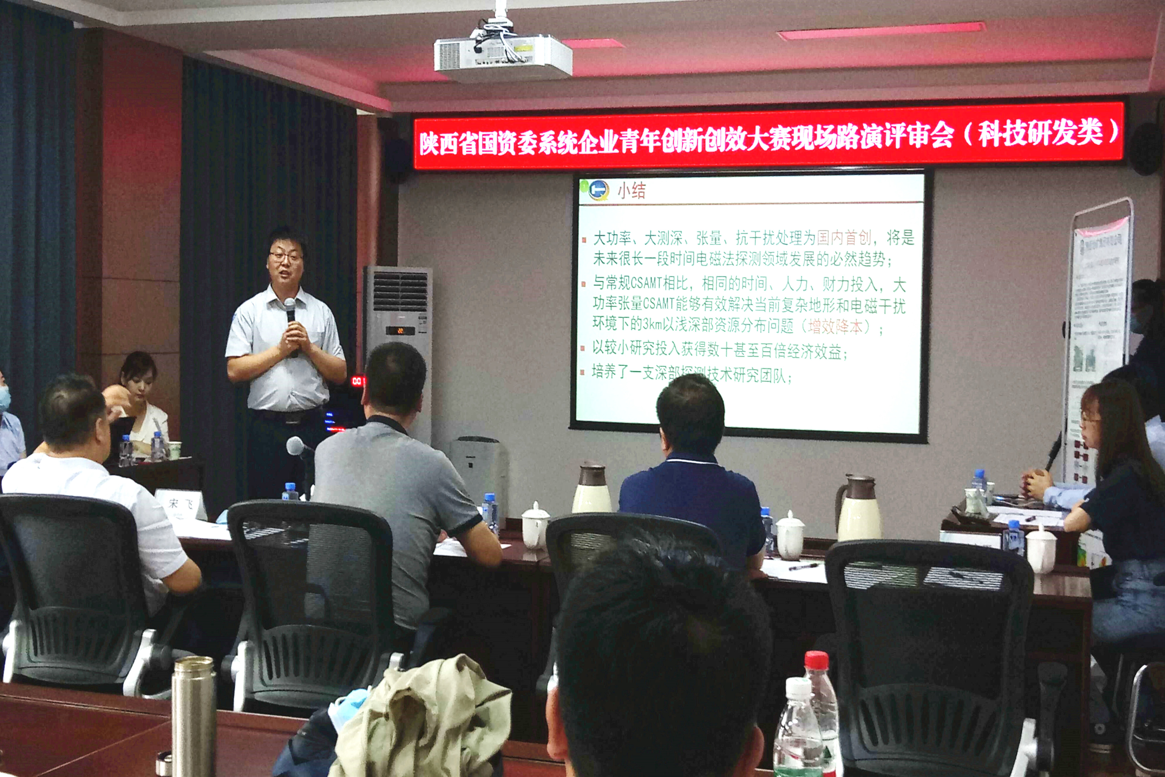 ??? 近日,以“青工巧匠· 青創未來”為主題的陜西省首屆國有企業青年創新創效大賽拉開帷幕,物化探隊選派優秀青年團隊,代表地礦集團在國網陜西培訓中心參加了省國資委系統“科技研發類”選拔比賽。