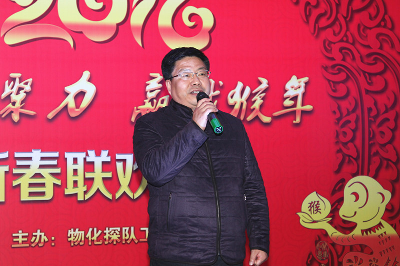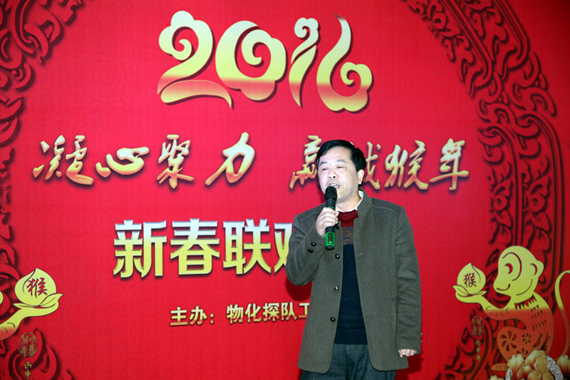 ??? 隊長王新坪致新春賀詞,他說:2015年在總公司的正確領(lǐng)導(dǎo)下,物化探隊創(chuàng)新發(fā)展,各項工作取得了顯著的成績。2016年按照總公司的新要求和物化探隊“大地質(zhì) 大物探 大發(fā)展”的經(jīng)營思路,凝心聚力,攻堅克難, 贏戰(zhàn)2106。全體干部職工一定要奮力搏擊,敢于擔當,攜手同心,用智慧和汗水共譜物化探隊新篇章!王新坪代表物化探隊領(lǐng)導(dǎo)班子,祝全隊職工在猴年來臨之際,身體健康,闔家幸福,生活美滿,事業(yè)有成。
