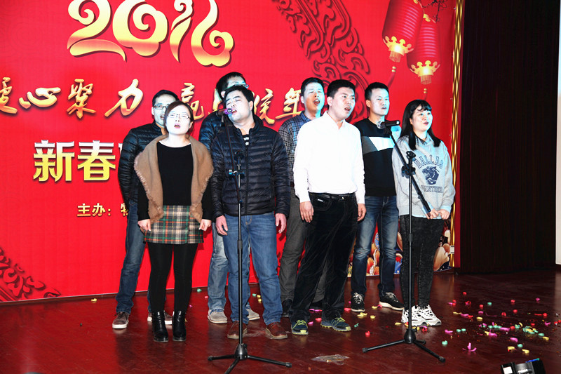 ??? 伴隨著炫動的燈光,激情的音樂,晚會在一支紅紅火火的“開門紅”舞蹈中拉開序幕,來自機關(guān)各科室的近十名青年職工,用熱辣動感的舞步瞬間沸騰了晚會現(xiàn)場,昭示著物化探隊天天開門紅,歡快的旋律、熱情的吶喊,讓晚會變成了一個“歡樂的海洋”,接下來的詩朗誦“新春頌”,表演熱情洋溢,共同祝愿物化探事業(yè)永遠與春天同行!鏗鏘有力的合唱《勘探隊員之歌》,唱出了物化探隊職工為了地質(zhì)事業(yè)砥礪奮進、無私的奉獻的崇高精神。女聲獨唱《謝謝你讓我這么愛你》溫情浪漫,別出心裁的《相信自己》亮出青春、堅定信心,相信2016我們一定能贏,把晚會推向高潮。白林科為晚會助興演唱了《男人哭吧哭吧不是罪》,激情的演唱博得了在場觀眾的陣陣掌聲。《父親的草原母親的河》表達了物化探人連續(xù)8年奮戰(zhàn)在內(nèi)蒙古巴丹吉林沙漠的深厚感情,他們真正是地質(zhì)一線的《真心英雄》,《我的好兄弟》唱出了物化探隊青年人的地質(zhì)情、戰(zhàn)友情,《北京頌歌》象征著團結(jié)、凝聚著力量。《眾人劃槳開大船》表現(xiàn)了物化探人齊心合力、堅定信心、開拓創(chuàng)新,贏戰(zhàn)2016 ,走向希望,并將演出再次推向高潮,更是點燃了現(xiàn)場干部職工的熱情,激起了一浪高過一浪的喝彩與歡呼,也給廣大干部職工留下了一段難忘的歡樂時光。晚會結(jié)束后,白林科、王新坪、賀志銀為獲獎節(jié)目進行了現(xiàn)場頒獎。
