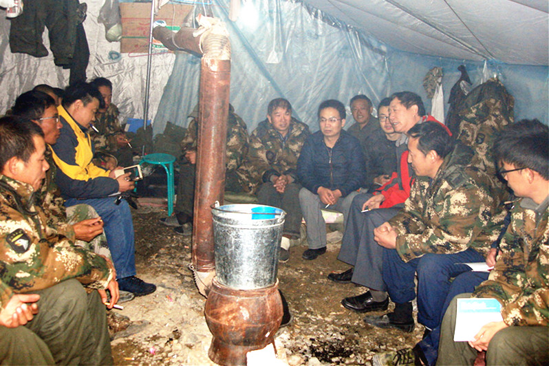 ? ? 在慰問檢查的同時,帶隊領導還組織召開了野外各項目黨小組會議,結合我隊“兩學一做”學習教育進展情況,對野外項目全體黨員提出明確要求:一是在野外項目生產施工的間隙認真自學,寫好學習心得,積極開展學習研討交流活動,努力提升自身的政治素養;二是各位黨員要時刻牢記黨員身份,在急難險重任務面前要走在前、闖在前、干在前,發揮好模范帶頭作用,為職工群眾做好表率;三是堅持學習工作兩不誤、兩促進。