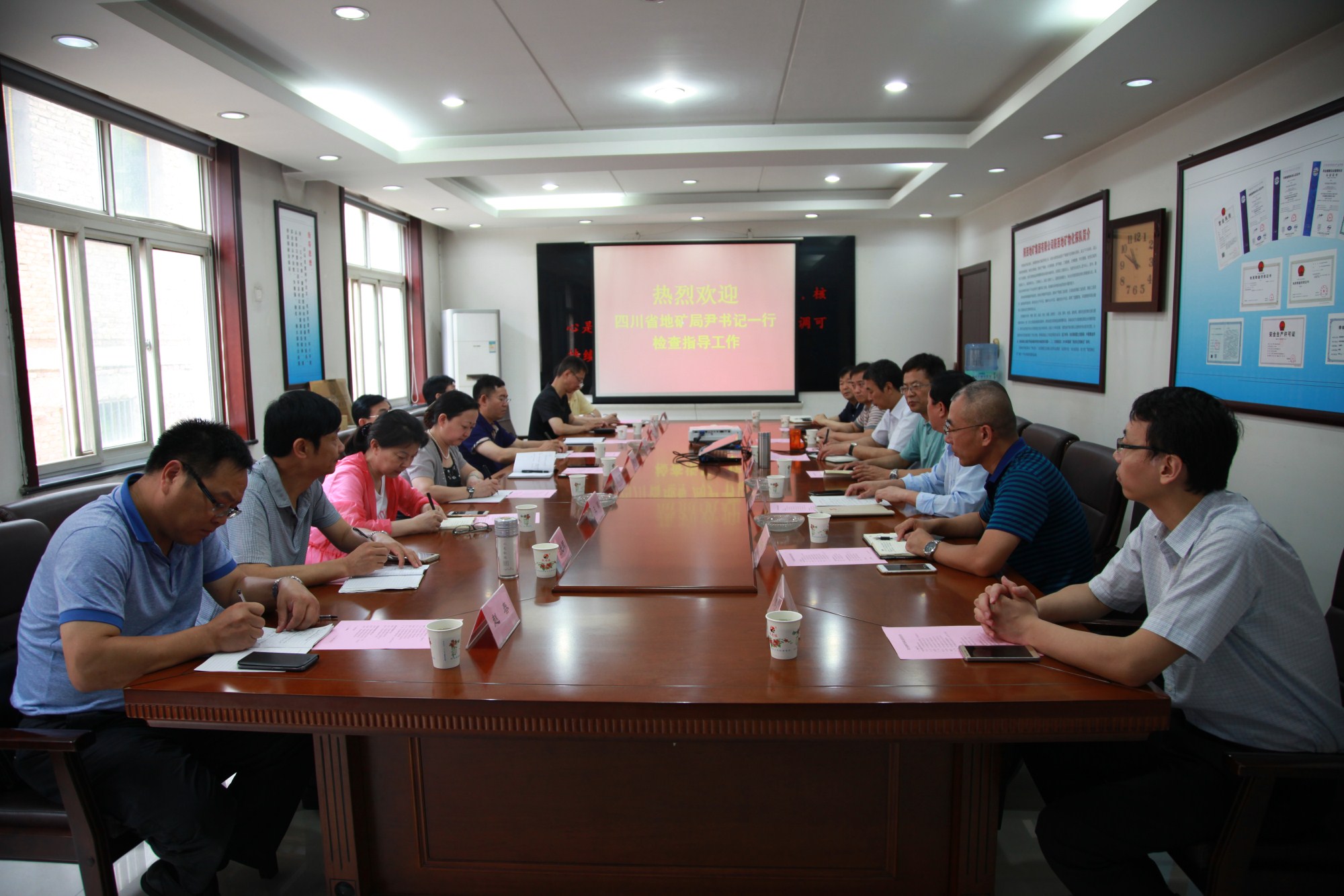 ? ? 王新坪對四川省地礦局一行表示熱烈歡迎,并詳細介紹了物化探隊基本情況、企業文化建設、企業轉型升級的探索與實踐、單位內部改革發展進程,以及在發展中存在的問題等。重點介紹了“物化探+”的發展思路、“大地質、大物探、大服務”發展戰略和加快產業結構調整、轉型升級發展的探索與實踐,以及黨建工作、文化建設的特色做法。