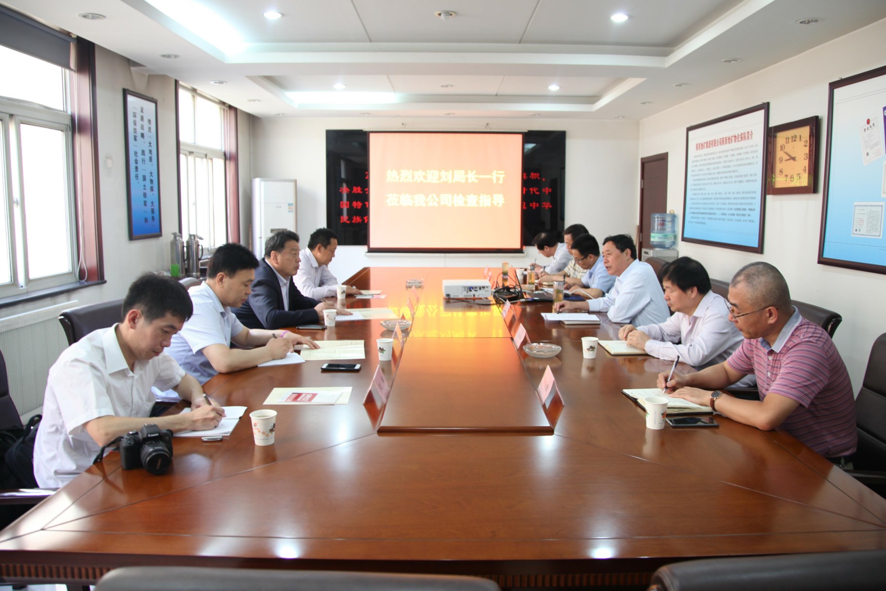 ? ? 公司黨委書記、執(zhí)行董事、總理王新坪,首先向劉局長一行到來表示熱烈歡迎,并重點介紹了我公司“物化探+”發(fā)展思路、“三個物探”發(fā)展理念、技術(shù)實力、企業(yè)文化建設(shè)、以及創(chuàng)新發(fā)展的成功探索與實踐。